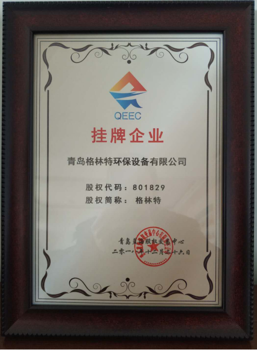 2018年12月26日,公司順利完成股權(quán)改革,在藍(lán)海成功掛牌,這是我公司成立以來的又一重要里程碑。掛牌成功,不僅使公司的股權(quán)改革、股權(quán)激勵(lì)政策有效落實(shí),而且可以吸引更多的資本為公司轉(zhuǎn)型升級和技術(shù)創(chuàng)新助力,為企業(yè)做大做強(qiáng)提供了有力的資本支撐。屆時(shí),公司也更名為“青島格林特環(huán)保設(shè)備股份有限公司”。