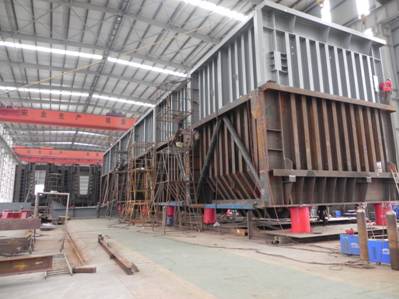 這是澳大利亞39116 CAPE LAMBERT PORT-B 港(50MTPA+50MTPA)的儲存料斗。儲存料斗由六個上部和六個下部組成。料斗上下部分用螺栓連接在一起,這是在車間進行試裝檢查的照片。它長46米,寬8.3米,高9.2米。重量是830噸。